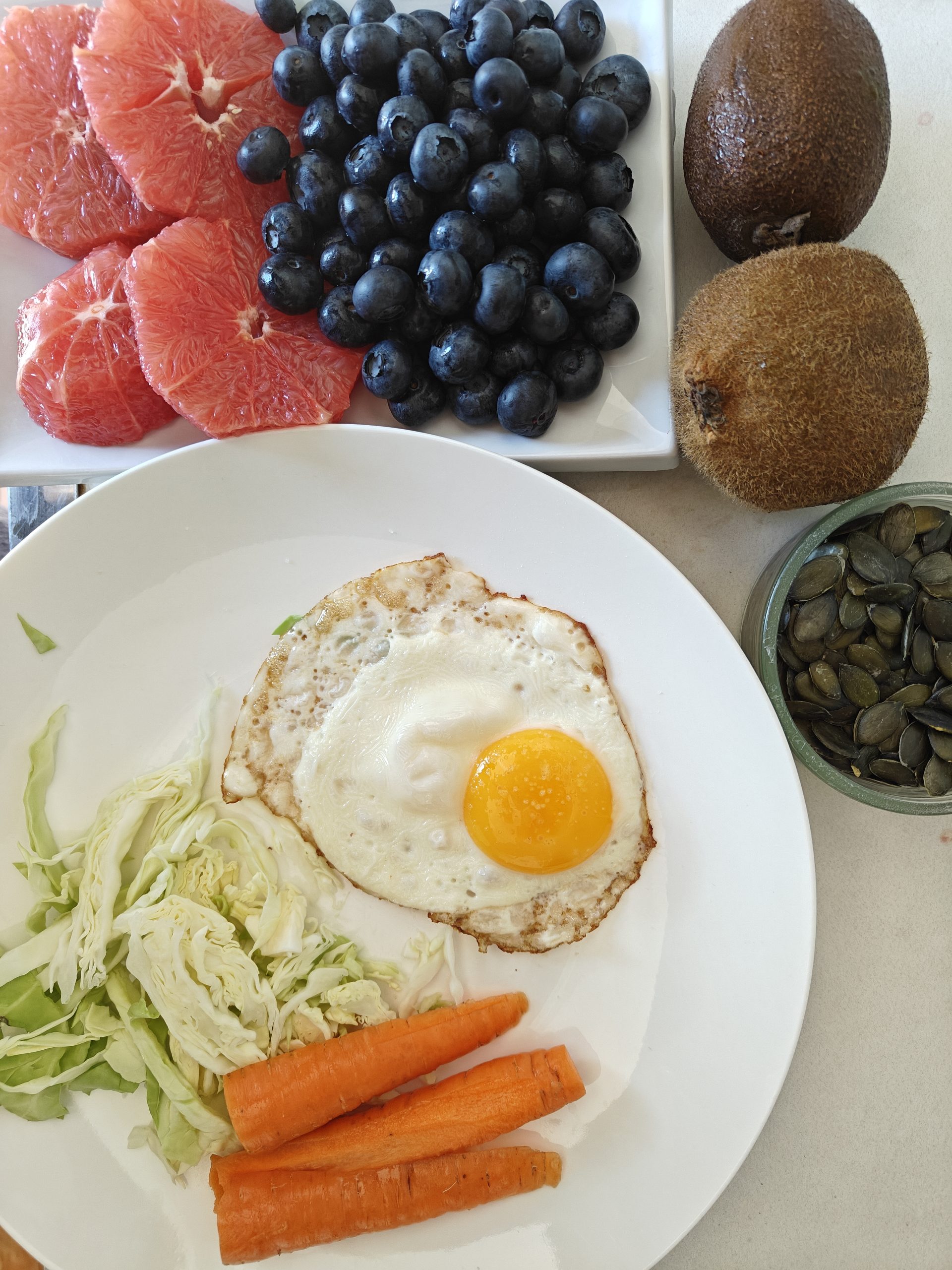 This is a great light breakfast idea if you’re looking to stay energized without overloading your system early in the day. The egg adds just enough protein, the veggies are great for digestion, and the fruit provides vitamins and natural sugar to wake you up.